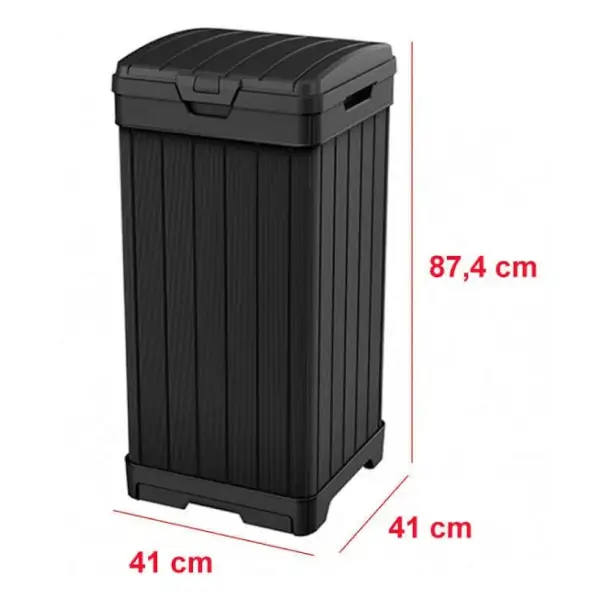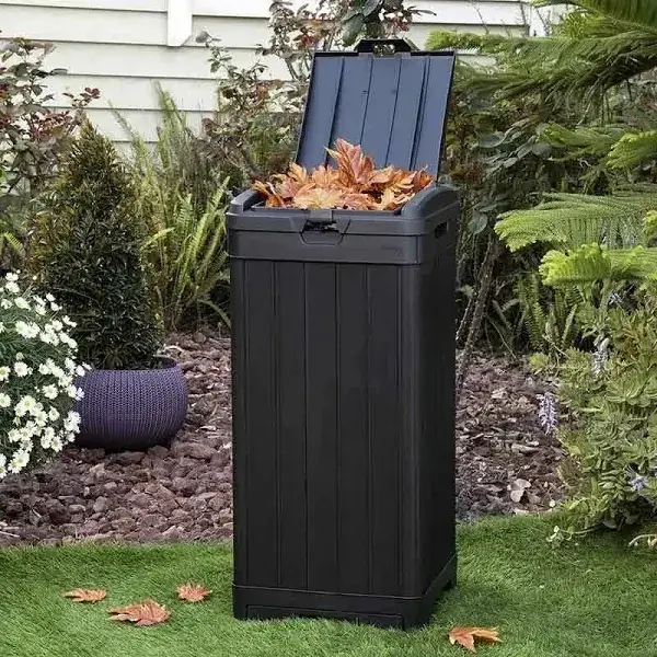 Operation: Designed for outdoor use, these bins feature a hinged lid for easy access and built-in handles for convenient transport. They are made from high-density polyethylene, making them durable and weather-resistant.