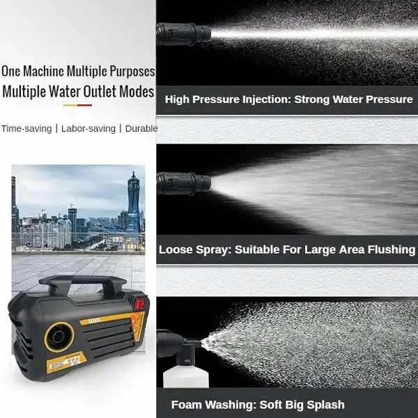 A heavy-duty pressure washer ideal for cleaning driveways, sidewalks, and exterior walls. It offers high pressure for tough stains and includes various nozzles for different cleaning tasks.